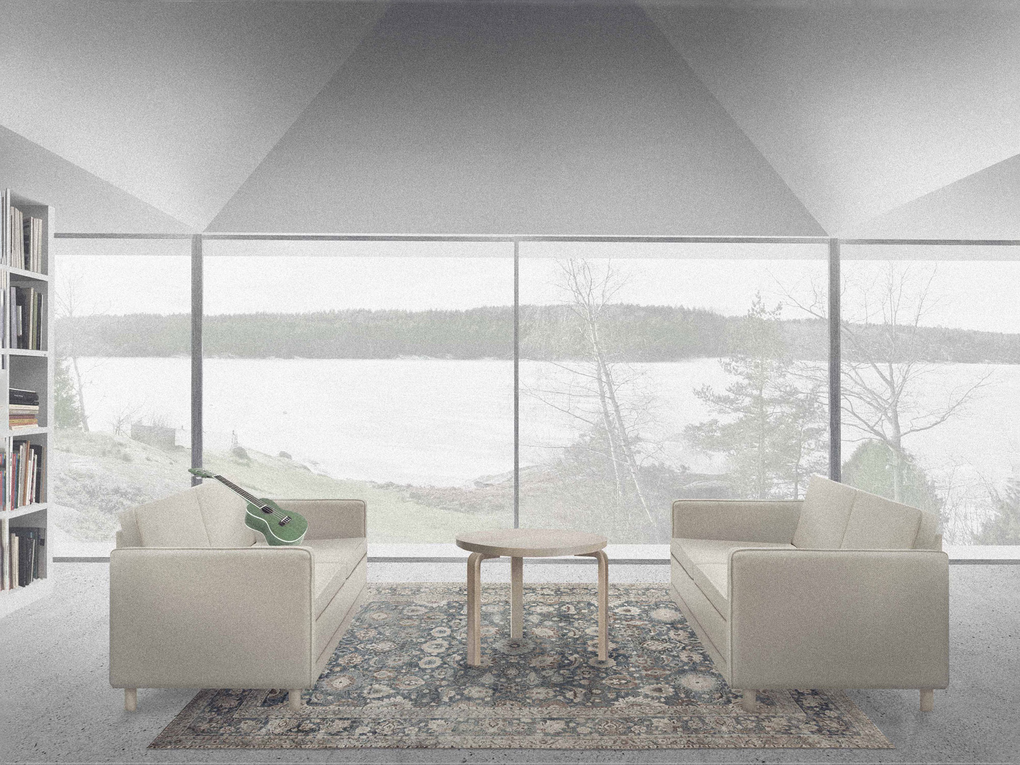 By placing the two-storey, rectangular volume across the direction of the linear site, it is split into two very different spaces: a neatly organised, grassy garden on one side, and on the other, a dramatically rocky slope, facing a lake and a nature reserve. The client desired an open, social ground floor and an intimate, private first floor. Thus, the spacious ground floor is fully glazed, with an open plan that is subtly divided into kitchen, dining room, entrance, living room and library by means of variations in ceiling height and geometry. The first floor, cantilevering from the ground floor so as to offer shade and weather protection along its perimeter, is accessed through stairs hidden at opposite ends of the building. Housing bedrooms, bathrooms and a study, the upper level can be regarded as an inversion of the lower: externally clad with aluminum panels and locally pierced by ribbon windows. From recessed balconies adjoining the bedrooms, the family members can enjoy the lakeview in private.
